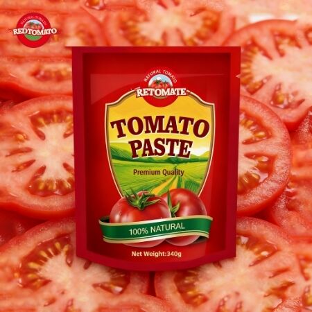 Nuestra pasta de tomate en bolsas de 340 gramos ofrece una comodidad y funcionalidad excepcionales.proporcionar un fácil acceso cuando sea necesarioCon una capacidad de 340g, esta pasta de tomate sirve como un elemento básico culinario versátil perfecto para cocinar en el hogar y aplicaciones de catering comercial.