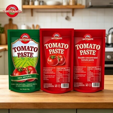 La bolsa de 50 g para pasta de tomate ofrece una solución de embalaje conveniente y eficaz que agiliza el almacenamiento y la utilización en porciones más pequeñas.reducir al mínimo los derrames o fugasEste tamaño es adecuado para recetas que requieren cantidades moderadas o para individuos que buscan porciones exactas manteniendo la frescura y la calidad.